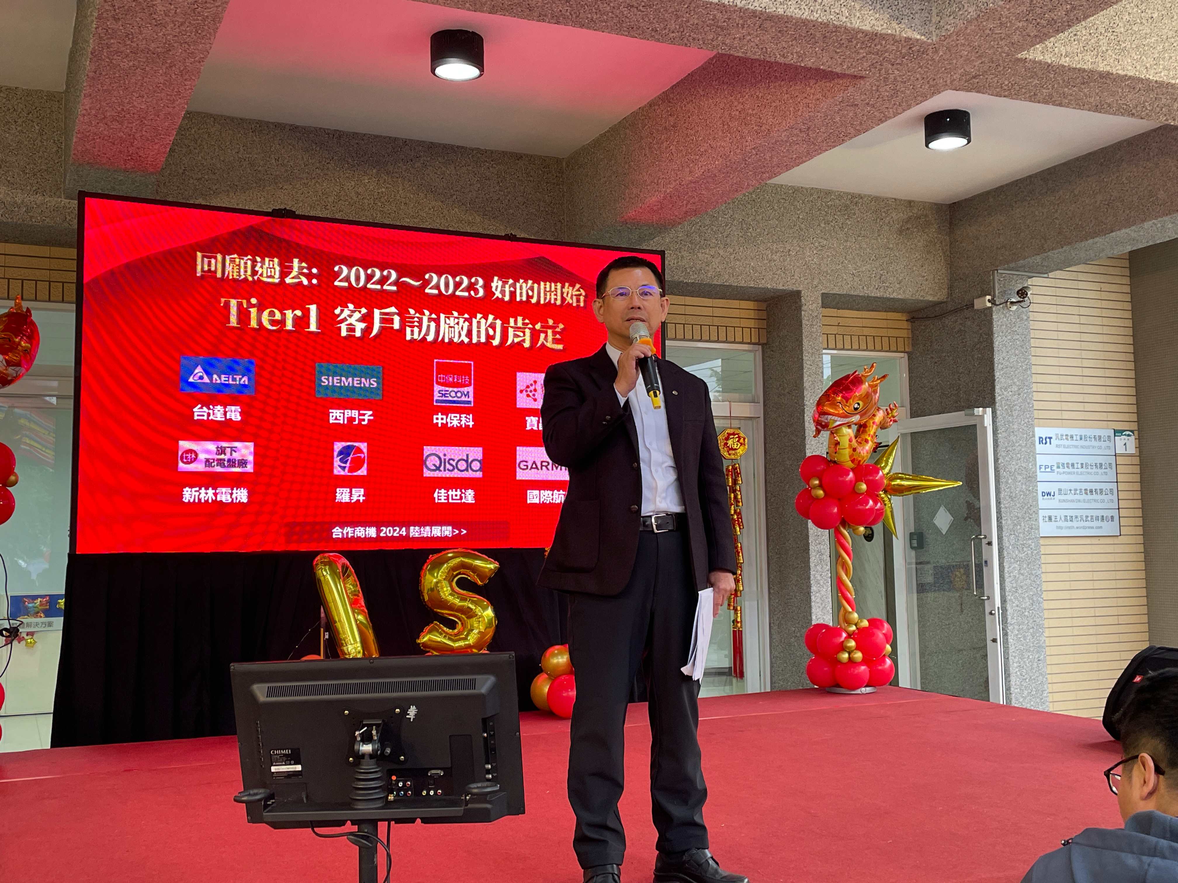 3/2(六) 汎武舉辦「2024龍飛躍武 旺年會」春酒晚宴,北中南所有同仁齊聚一堂 共襄盛舉!由董事長帶領回顧並展望2024年金龍年,一起●衝營收●拚加薪●拿獎金。晚宴開場由南高雄家扶中心小朋友,帶來活力打鼓表演,活動中除了歡唱表演外,當然少不了抽獎與加碼環節,實在是太緊張刺激了!進入尾聲時,由管理部準備的驚喜彩蛋,為董事長慶生來劃下完美的句點。