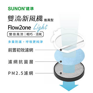 【SUNON建準】Flow2one Light雙流新風補氧機(進風型)F-AHR10T00